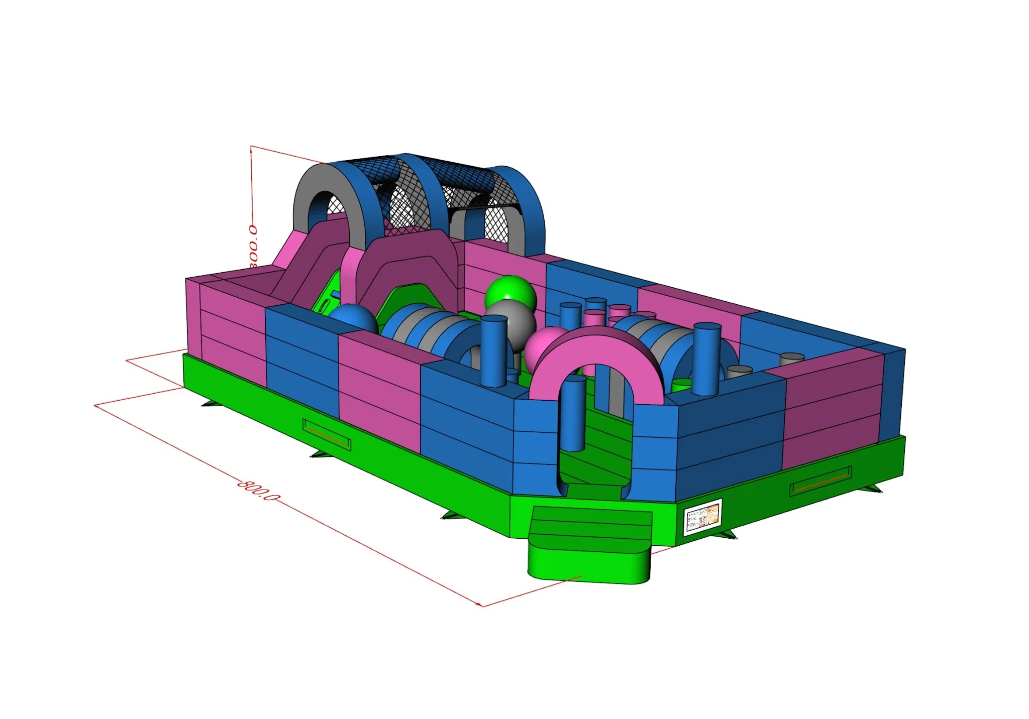 Et solid hoppeslott med tak og god høyde, som gir barna en trygg og energifylt lekeplass. Den lukkede utformingen gjør det godt egnet både utendørs og innendørs (ved tilstrekkelig takhøyde). En allsidig aktivitet som gir mye moro på begrenset plass.