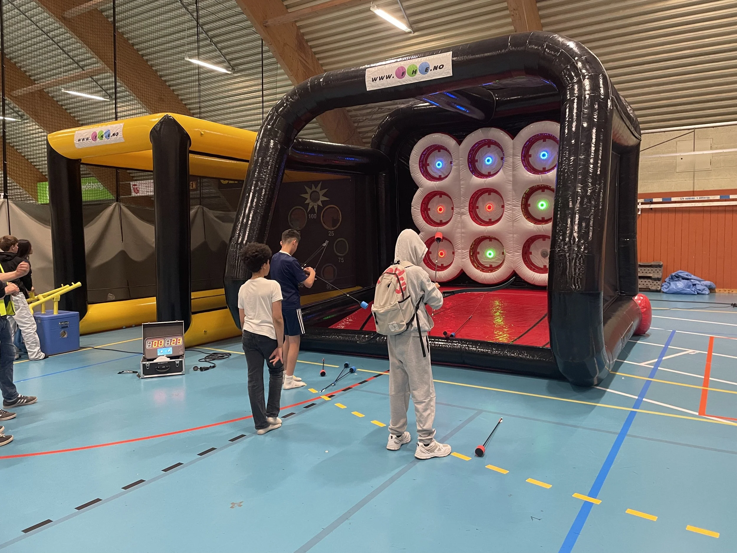 Arenaen kan brukes til individuelle øvelser, dueller, lagspill og turneringer, og passer perfekt til skolearrangementer, bedriftsaktiviteter, teambuilding, messer og aktivitetsdager. En robust og visuell aktivitet som trekker publikum og engasjerer både deltakere og tilskuere.
