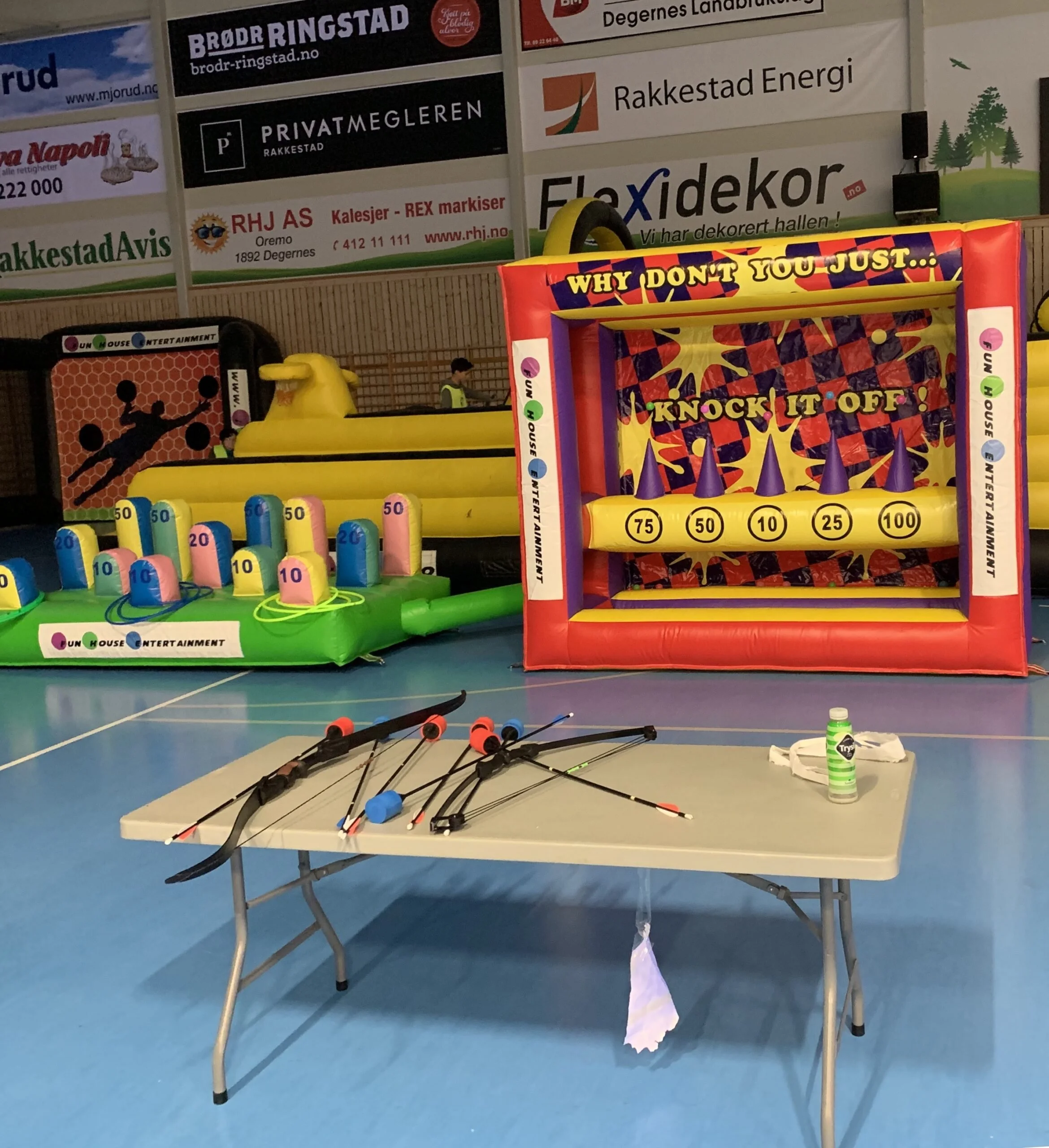 Archery Target er en trygg og spennende skyteaktivitet der deltakerne skyter på svevende plastballer med pil og bue. Pilene har skumtupper, slik at aktiviteten er sikker for både barn og voksne. Banen kan enkelt tilpasses ønsket avstand og gir en fin kombinasjon av presisjon, konkurranse og mestring.