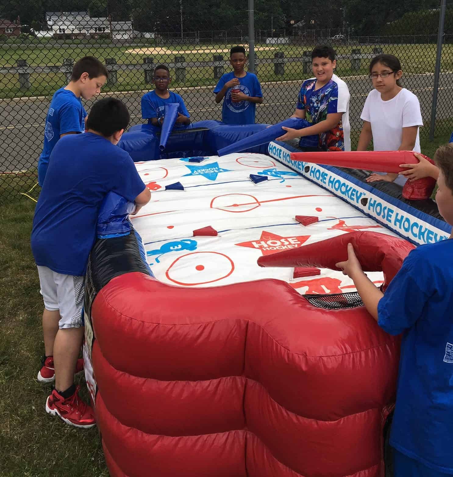 Hose Hockey er en heftig og publikumsvennlig hockeyarena hvor deltakerne styrer ballen kun ved hjelp av kraftige luftstråler fra flere dyser. Her handler det om taktikk, presisjon og samarbeid for å føre ballen forbi motstanderlaget og i mål.