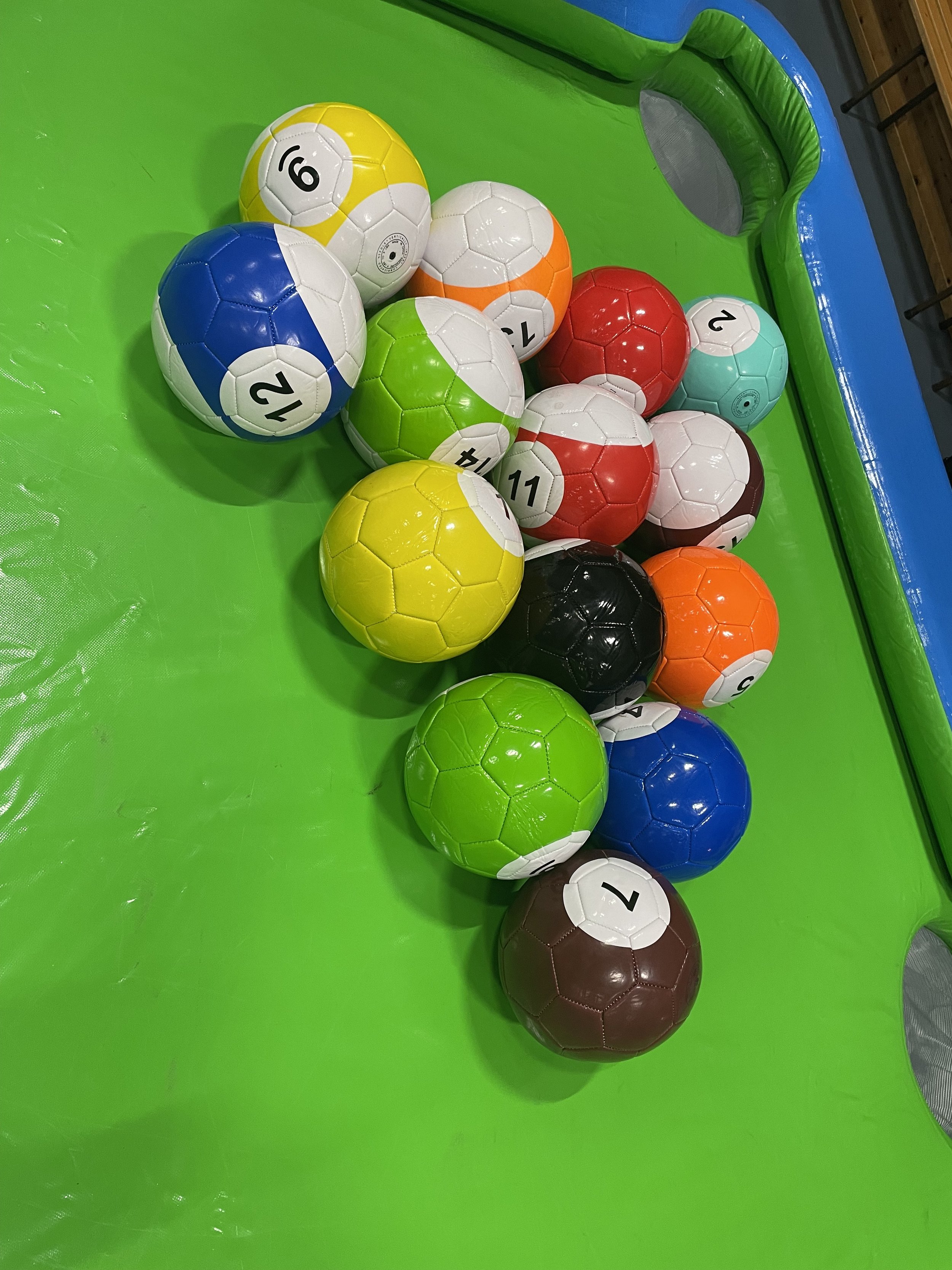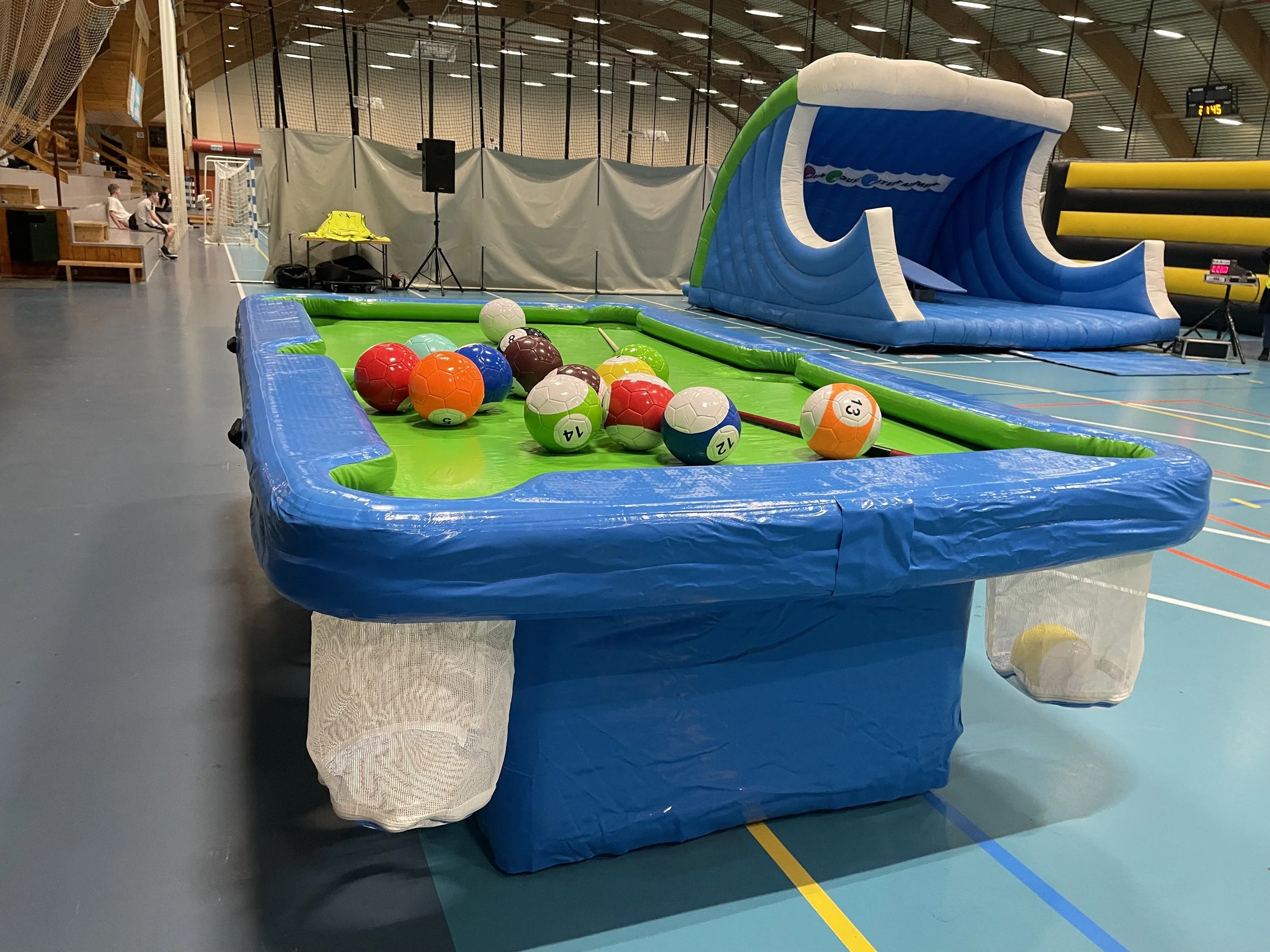 Et annerledes og morsomt biljardbord som garantert vekker oppmerksomhet. Dette oppblåsbare bordet spilles som et vanlig biljardbord – med kø og baller, men i et stort, mykt og publikumsvennlig format som gjør det ekstra gøy både å spille og å se på.