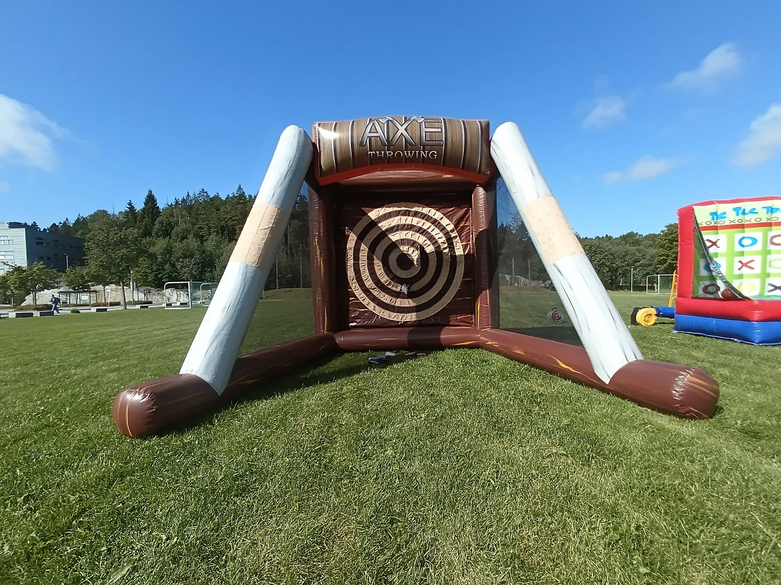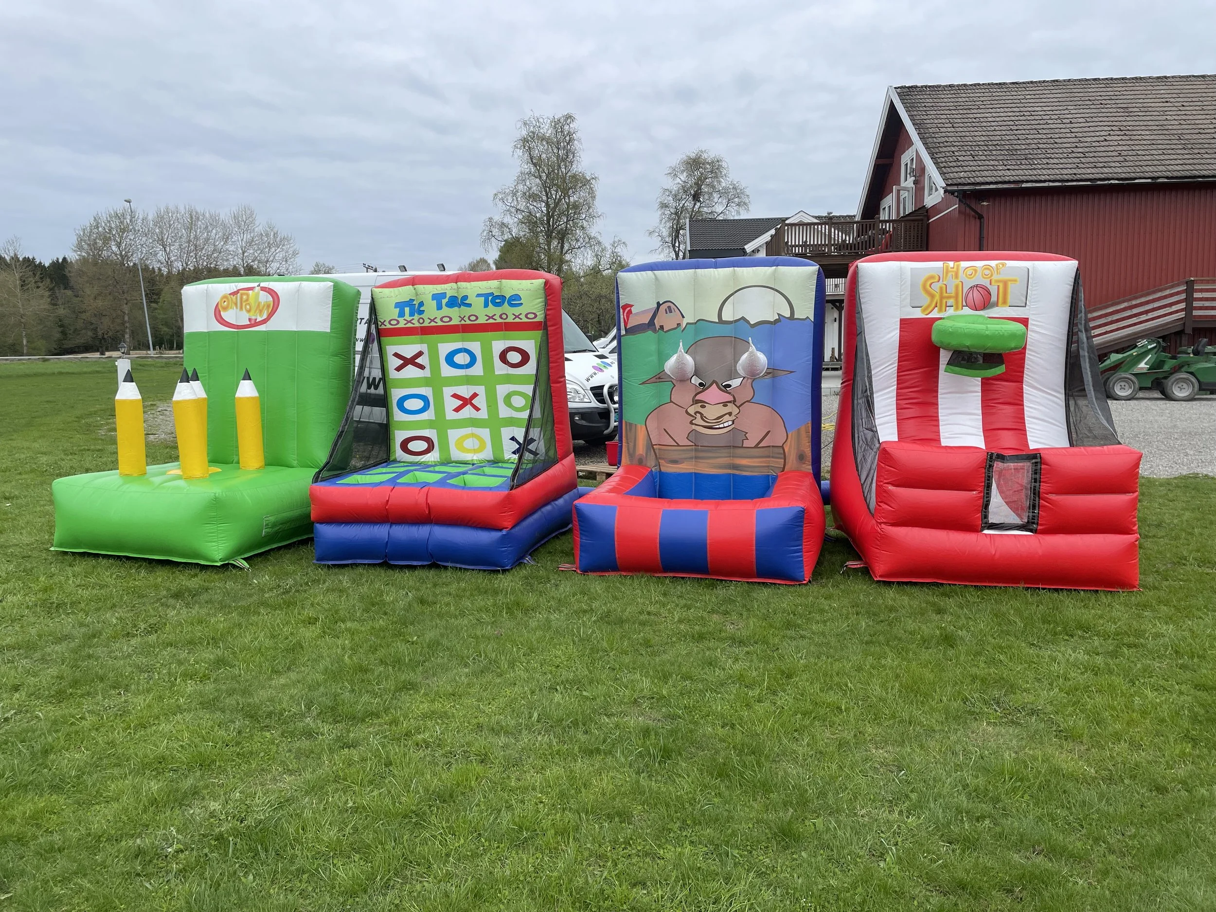En klassisk tivoliaktivitet med fem ulike kasteøvelser samlet i én oppblåsbar rigg. Her kan flere delta samtidig, enten på tur eller i små konkurranser. Passer like godt for barn som voksne, og fungerer godt som blikkfang på arrangementer, messer, idrettsarrangementer og familiedager.