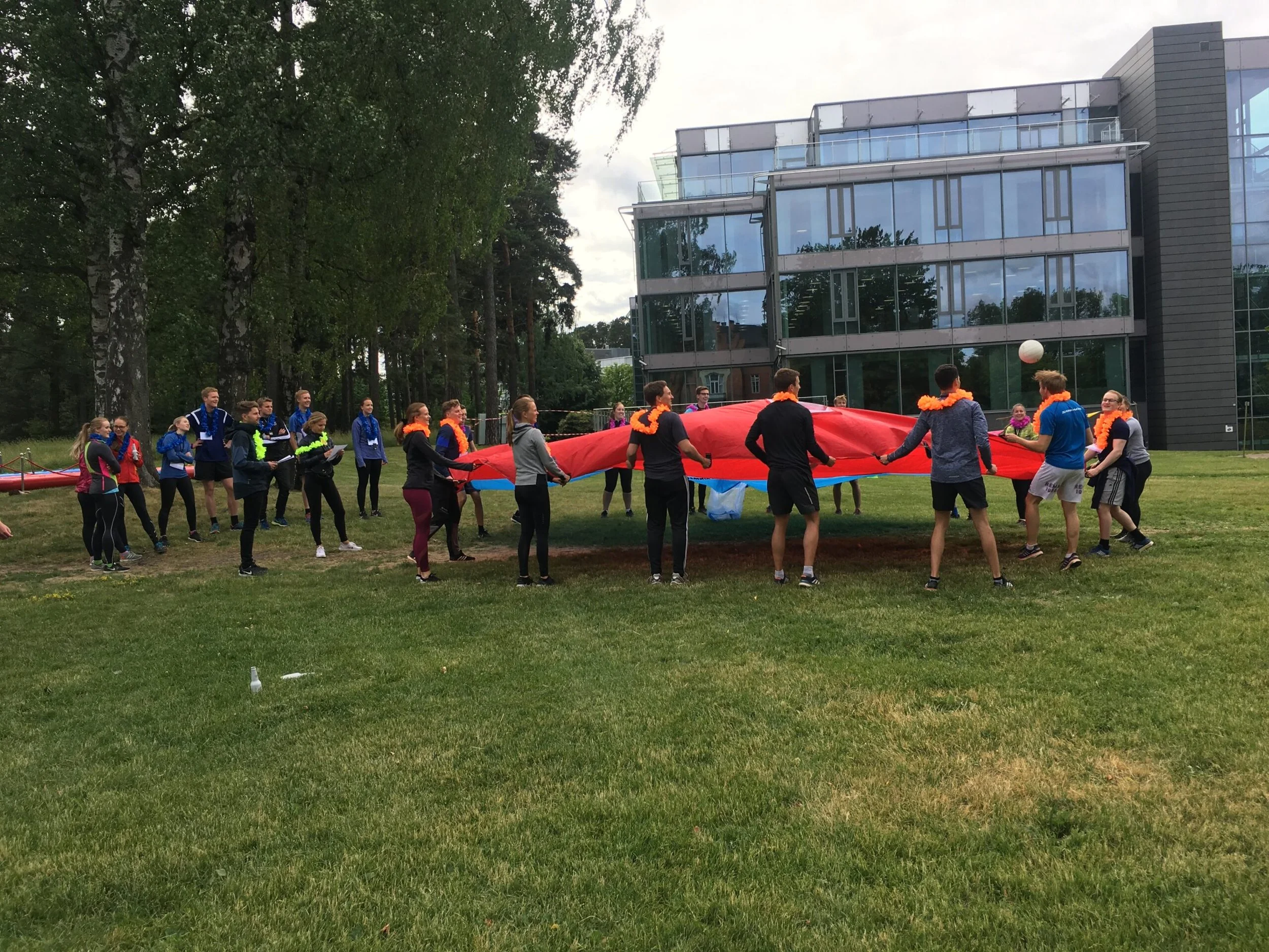 Fallskjerm-fotball er en sosial og morsom lagaktivitet hvor deltakerne må samarbeide for å styre ballen ved hjelp av et stort seil. Seilet er delt i to lag og leder til hvert sitt mål. Her handler det om presisjon, kommunikasjon og lagarbeid for å få ballen i riktig retning. Like gøy for barn, ungdom og voksne – perfekt til teambuilding og aktivitetsdager.