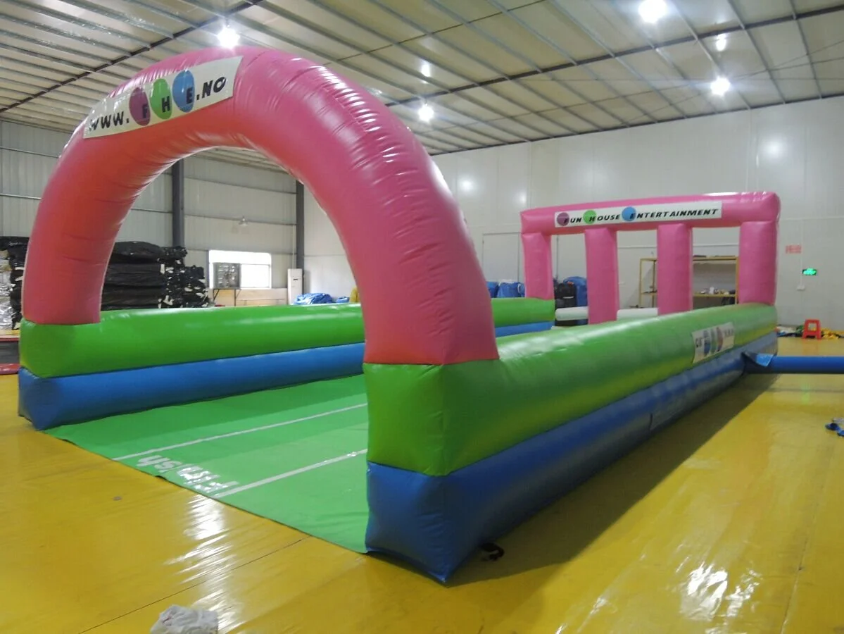 EN OPPBLÅSBAR FOTBALLBANE SOM KAN FYLLES MED VANN ELLER SÅPEVANN FOR Å GI EKSTRA GLATT UNDERLAG. RESULTATET ER KAOTISK, LATTERFYLT OG FULLT AV SKLI OG FALL. EN ANNERLEDES OG UTROLIG MORO MÅTE Å SPILLE FOTBALL PÅ.